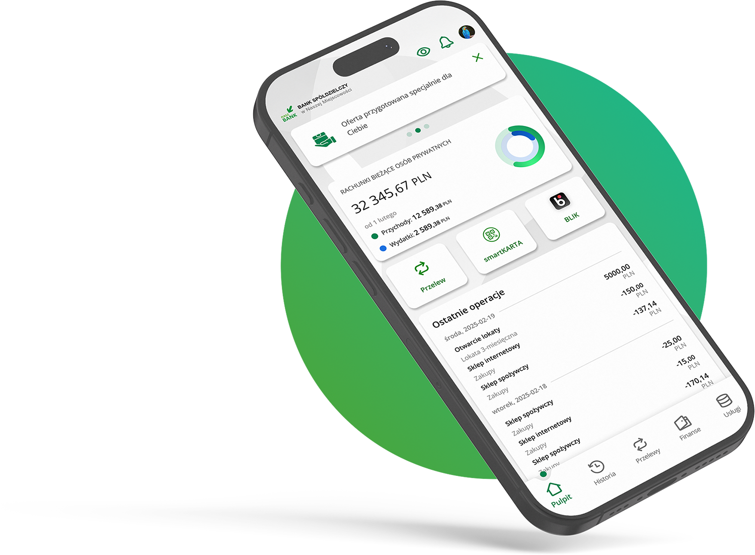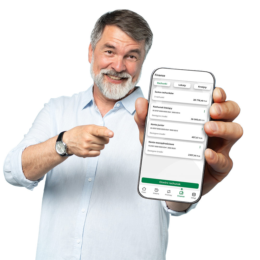 Z naszą aplikacją masz stały dostęp do swoich finansów, niezależnie od miejsca, w którym jesteś. Sprawdzaj saldo, realizuj szybkie przelewy, inwestuj oszczędności i miej pełną kontrolę nad bezpieczeństwem transakcji. Odkryj wszystkie funkcjonalności stworzone z myślą o Tobie i Twoim komforcie – aby życie było prostsze, a finanse zawsze pod kontrolą.