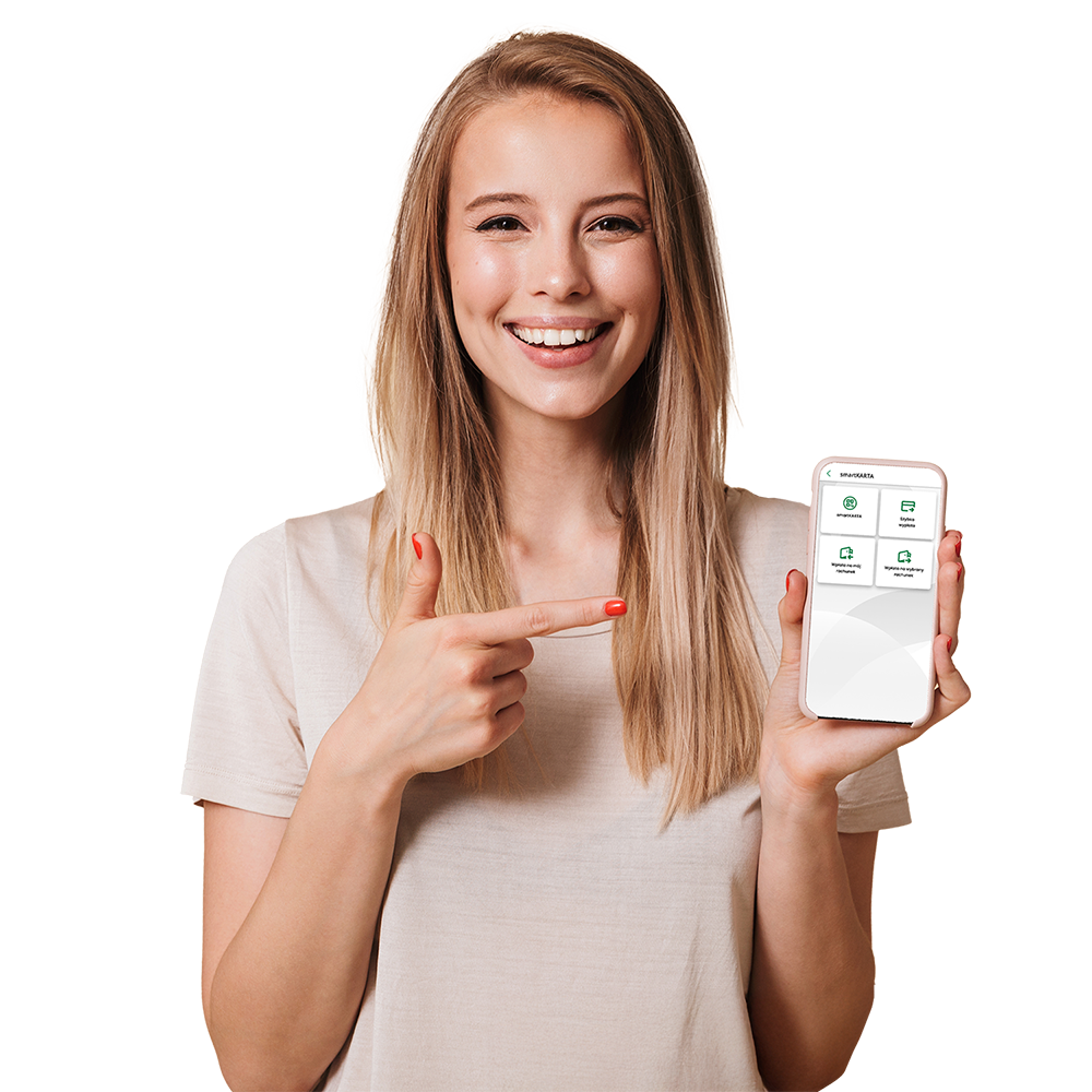 Dzięki smartKARCIE możesz wpłacać i wypłacać gotówkę bez użycia karty. Kwotę wybierasz i zatwierdzasz bezpośrednio w aplikacji.
